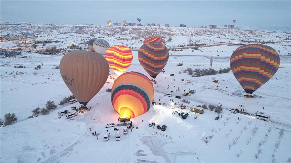 Randonnée dans la vallée Blanche, très ouverte et dominée d’élégantes cheminées de fée, où le tuf est d’un beau blanc parfois taché d’ocre. Le chemin suit plus tard un vallon plus étroit, avec des jardins fruitiers, des vignes et des prodigieuses cheminées féeriques dont l’allure phallique a contribué au surnom de cette vallée, dite « vallée de l’amour ». Les habitations troglodytiques de la vallée sont abandonnées et servent maintenant de remises ou d’écuries. Arrivée au village d'Uçhisar, regroupé autour de son promontoire rocheux appelé la Forteresse (une crête de cendres volcaniques en réalité) qui servit de logement troglodytique durant la période hittite. Montée au sommet du château qui le domine pour une vue panoramique sur la Cappadoce. Après déjeuner, départ pour une magnifique balade dans des paysages aux couleurs surprenantes, c'est la vallée des Pigeonniers. Sur ses parois aux couleurs pastel courent des traînées lie-de-vin, des jaunes safran ou des verts moussus. Le sentier serpente entre les jardins et emprunte de nombreux tunnels pour rejoindre le centre du village de Göreme.Transfert : ----